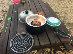 Vanavond maar eens de Cobb uit de kast getrokken en wat Octopus tentakels geschroeid met een tomatensalade.